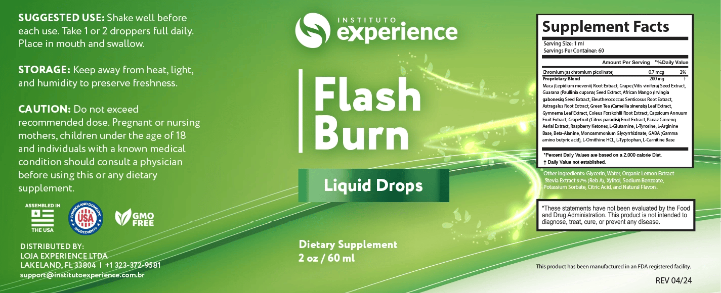 FlashBurn is a potent, natural liquid formula designed to support healthy weight loss. It is manufactured in the USA in an FDA-registered and GMP-certified facility, ensuring the highest standards of purity and quality.